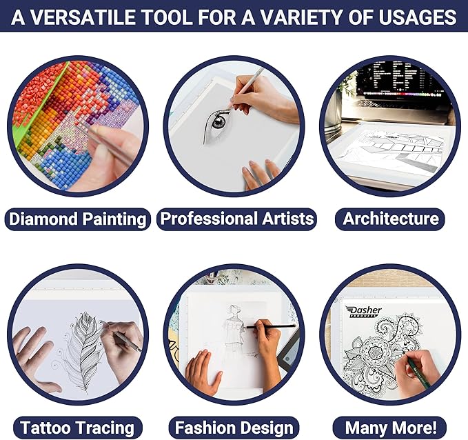 - Versatile Applications: Designed for a wide range of uses, this light table is ideal for sketching, tattoo tracing, architectural drawings, scrapbooking, and calligraphy. It’s also great for embossing, stained glass design, 2D animation, X-ray viewing, and industrial design. Whether you're an artist, architect, doctor, or hobbyist, this tracing pad is your go-to tool for projects that require precision and clarity