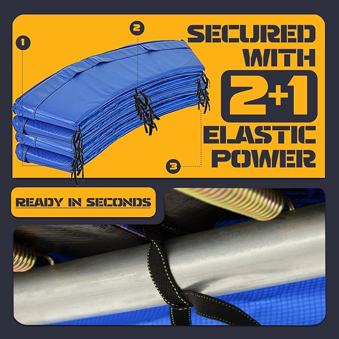 - âď¸ă UV-Resistant & Weatherproof Trampoline Pad for Long-Lasting UseăEngineered with 2000-hour UV resistance testing, this trampoline cover blocks harmful sun rays and repels water, ensuring year-round outdoor safety. The double-reinforced elastic straps securely wrap around trampoline poles and frames, preventing shifting during play. Ideal as a 10 FT trampoline pad replacement for backyard setups, schools, or recreational centers demanding fade-proof and waterproof protection.Weather resist!