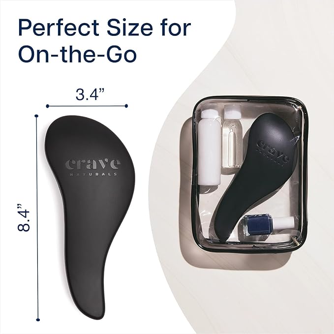 Crave Naturals Biggie Glide Thru Hair Brush - Detangler Brush for Curly, Straight, Wet or Dry Hair - Gentle Detangling Brushes for Adults, Kids, Toddlers - Hair Accessories for Women, 8.4x3.4 - Black