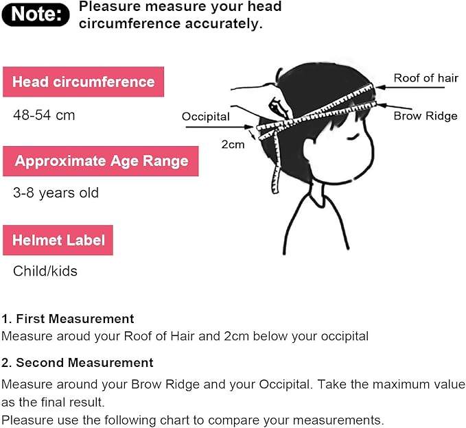 - [Kids Helmet] It is suitable for kids aged 3–8 years. The helmet size is 48–54 cm/18.9– 21.3 inches and easily adjustable for a snug fit; it could grow with your child for a few years