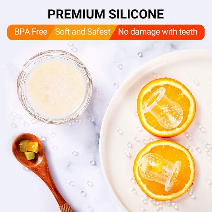 - MULTIFUNCTION DESIGN - Infant fresh food feeder is both a pacifier fruit holder and teething toy, these pacifier fruit holders can be used to store fresh or frozen fruits, vegetables, ice chips, breast milk, & even medicine! It relieves your baby's aching itchy gums,and help build up mouth muscle at the same time, these baby fruit suckers are a must have