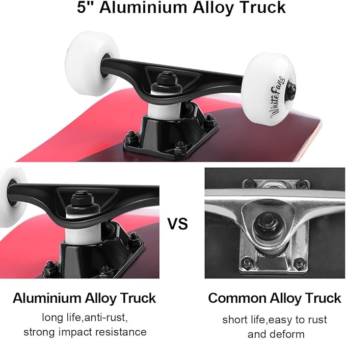 - 🛹 No Assembly Required: You'll receive a complete skateboard comes with 5" tough magnalium alloy truck which helps save your time and hassle of assembling. Ready to play out of the box!