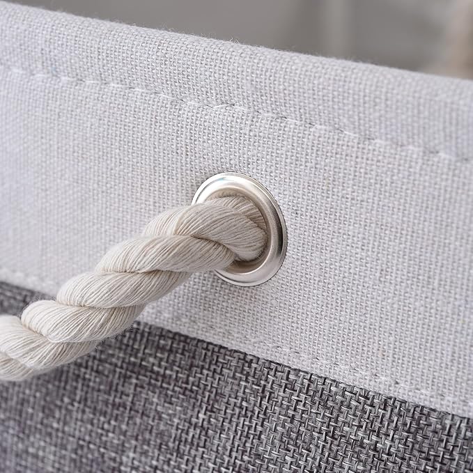 - Closet storage baskets: Fabric storage bins set made of attractive canvas with interior lining. Solid hard inner base to help with Structure and Stability. This set of baskets can be used alone or with a cabinet, shelves, etc