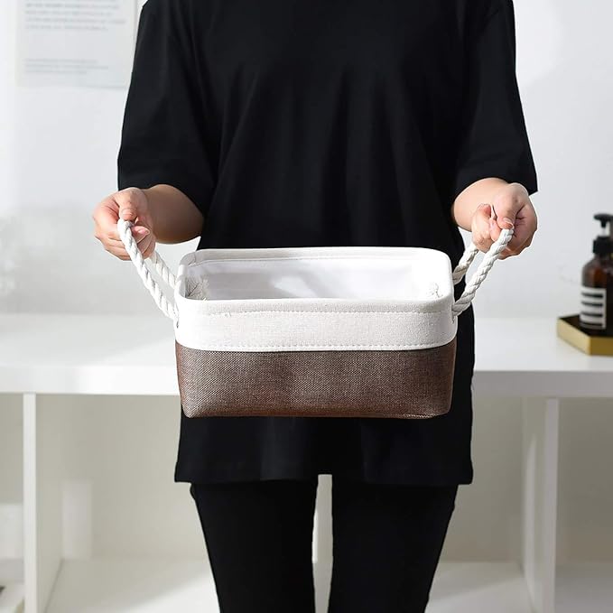 - Lightweight & Soft: Small baskets are lightweight, sturdy and easy for place on the floor to grab their favorite . Easy transport with rope handles, lightweight for carrying and organizing.Structure can allow you put more heavy stuffs. Modern and stylish design perfect for any room decor, small rectangular baskets are so universal to work anywhere you are looking to get organized