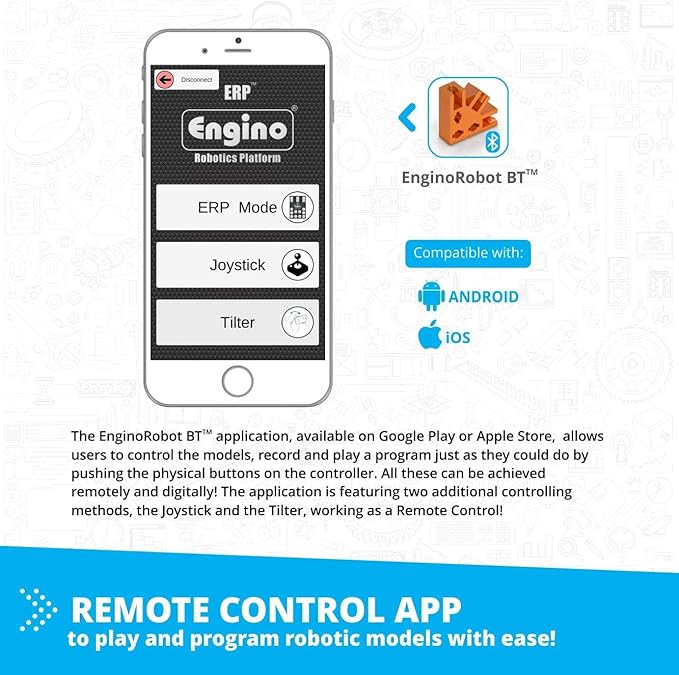 - AWARD-WINNING BLUETOOTH CONTROLLER: Professional-grade ERP controller with 2 IR sensors, 2 motors, and smartphone app connectivity. Kids program robots via buttons OR mobile remote control!