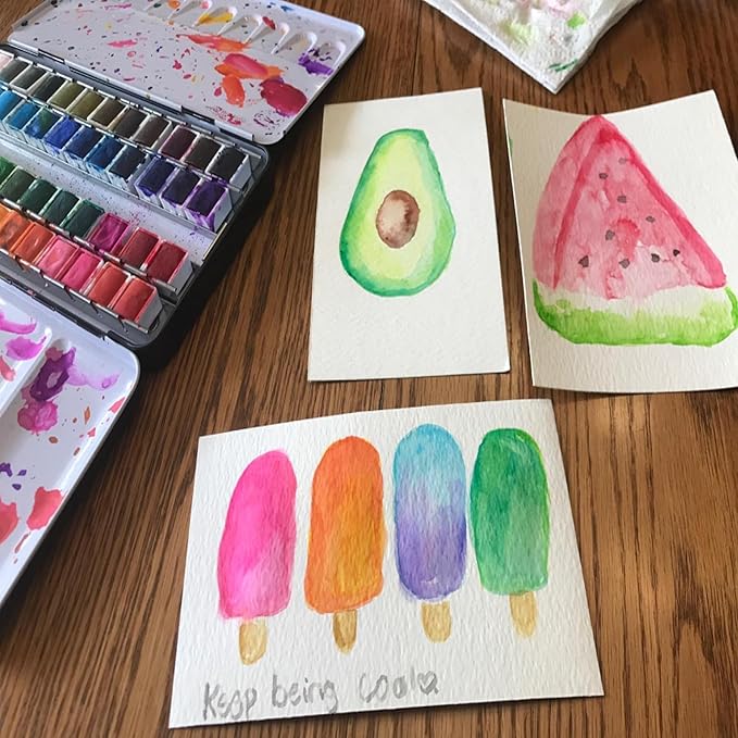 - 【Perfect Gift Choice】This watercolor set is packaged with a metal box and includes a water-filled brush pen. A built in finger ring design makes you more convenient to carry this tin box. The half cover of this box can be used as palette. Great gift for students, watercolor lovers, professional watercolor painters, kids.Ideal for coloring books, business cards, art diaries, sketching and creating your own artwork on watercolor pad