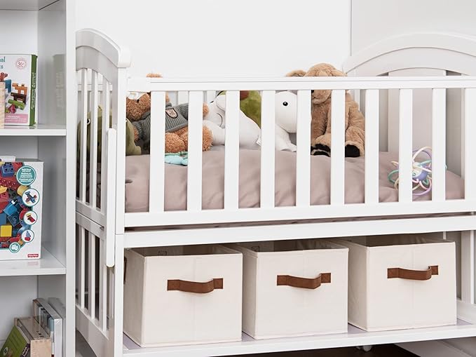 StorageWorks Storage Baskets for Shelves, Foldable Fabric Closet Storage Bins with PU Handles, Fabric Storage Bins Clothes Organizer, Ivory White, 3-Pack, Large