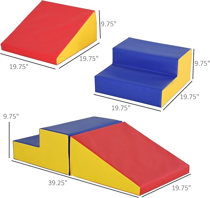 - Foam Stacking Blocks Info: Includes a ladder (19.75" L x 19.75" W x 9.75" H) and a ramp (19.75" L x 19.75" W x 9.75" H). Recommended/Standard age: 12-36 months. Standard: CPSIA, ASTM F963.