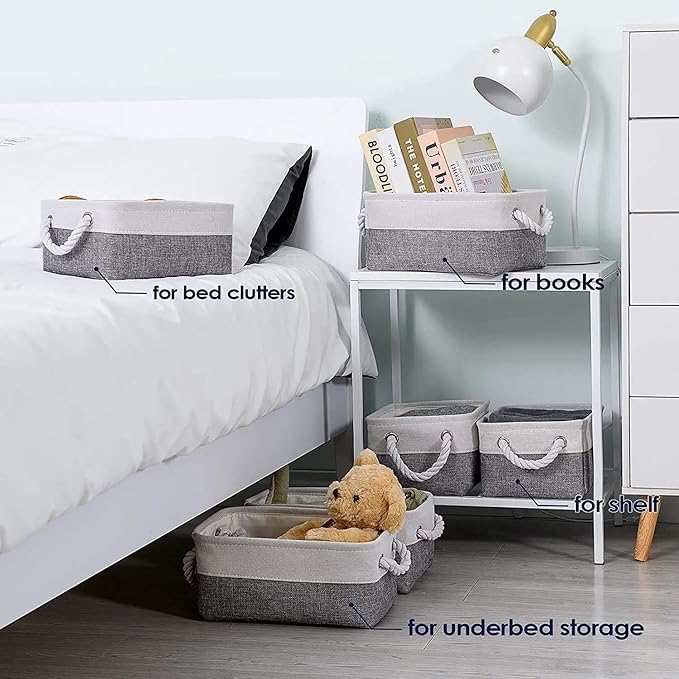 - [Storage in Anywhere] The small storage bins are ideal for keeping household essentials tidy on any shelf, floor, or tabletop. Store clothes, books, toys, holiday items, and much more for seamless organization. The portable carry handles make it easy to lift and tote anywhere from a baby nursery, cube organizer shelf, or closet for seasonal storage