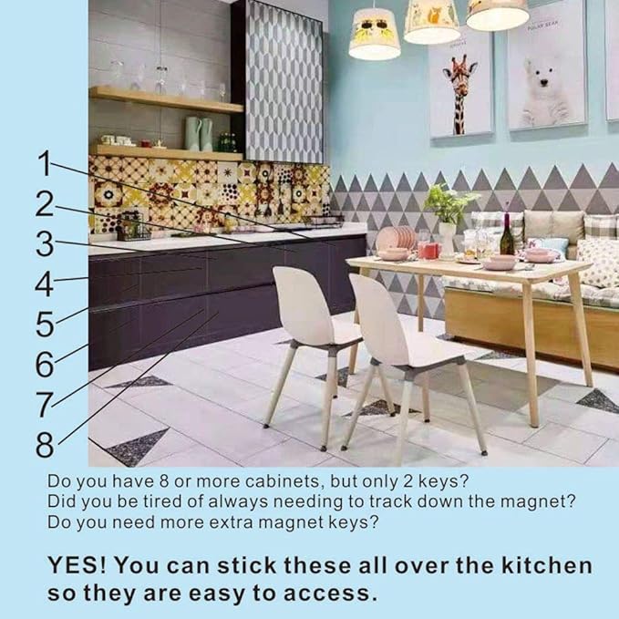 Baby Proofing Magnetic Cabinet Locks Child Proof Extra Magnet (5 Pack) Universal Replacement Keys for Magnetic Locking System - Baby Safety Latch for Drawers and Cabinet - 5 Key Holders Included