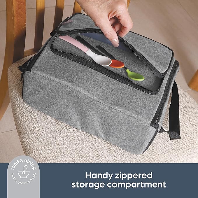 - ππ¨π§π―ππ§π’ππ§ππ π π¨π« πππ«ππ§ππ¬: This isn't just a booster seat for the dining table. Featuring a carry strap, it quickly and easily can be thrown over your shoulder for on the go adventures & the built-in storage gives you plenty of space to store the necessesities. Dine with confidence knowing you have a dependable high chair solution no matter where you are.