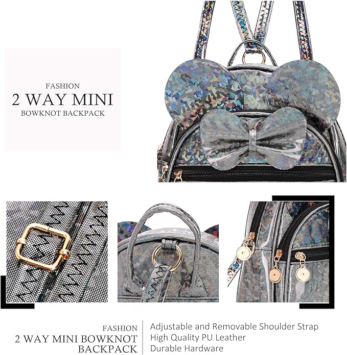 • Capacity: This cute mini backpack both for girls and women, used for daily, shopping, day trips and short travel. It can hold your wallets, keys, cell phones, makeups and other small accessories and stuffs