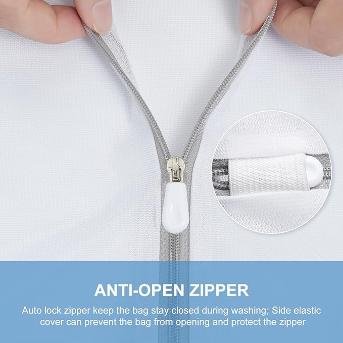 - Auto-locking zipper: The zipper can be locked automatically so that the zipper will not be opened during washing; the zipper cover provides extra protection for the zipper; that would protect the garment throughout the wash