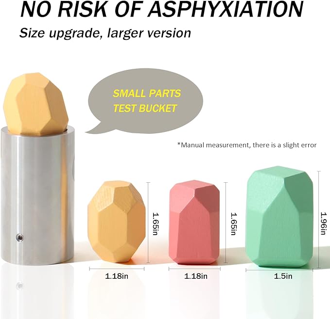 - MATERIAL: Stone balance building blocks are made of high quality wood and coated with eco-friendly paint. It is natural, safe, non-toxic and exquisitely crafted. Hand-polishing process ensures a smooth, burr-free surface for better child play.