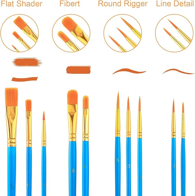 - 【BRUSH PENS】:10 sizes versatile paintbrushes set and 6 sizes refillable water brush pen with a variety of shapes make mixing color easier. After using the brushes, it’s very convenient to clean them with warm soapy water and reshape the brush tips. Air-dry the brushes and store them in a dry place for long time of use.