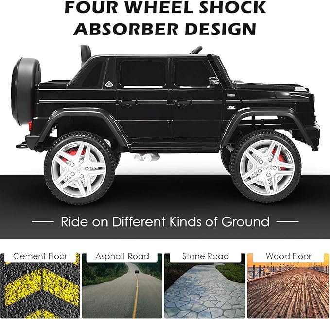 - Safe & Steady Driving Experience: Safety always takes priority in any environment, in particular the kids toy. Therefore, this electric car for kids adopts shock absorber spring in each wheel, minimizing the shock feeling and ensuring a smooth driving. More, it is worth mentioning that its soft start and stop is capable of protecting children from danger caused by too fast speed.