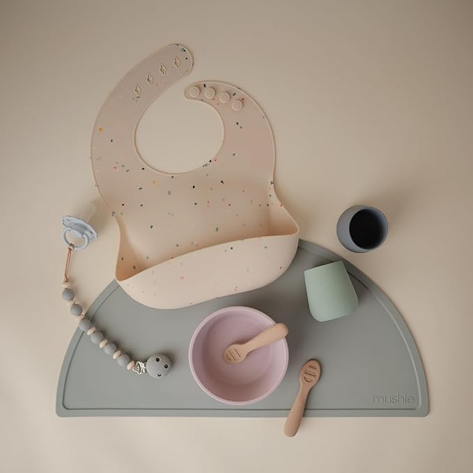 - Keep your little one feeling comfy and clean with our fun-loving collection of silicone bibs. Designed in Sweden, mushie bibs feature classic patterns capturing a look that's both timeless and elegant. Our timeless colors and patterns pair well with mushie silicone placemats, splat mats and tableware.
