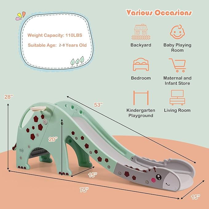 - 【Best Gift to Stimulate Kids' Potential】Let your baby create and experience fun childhood! Slides are the initial experience for babies to feel "speed". Different lengths and gradients of slides provide different speed experiences for babies. Most babies' initial experience of speed comes from playing on slides. During the process of sliding, kids need to master their own balance and rotation speed, which exercises their body coordination abilities.