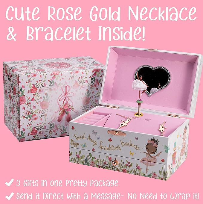 - This charming jewelry box has a built-in musical feature that plays a classical waltz. The Unicorn model plays “Somewhere Over the Rainbow”, perfect for your little Wicked fans. The Ballerinas play "Clair de Lune". High-quality child safety tested MDF wood is used in constructing the music box. The smooth, glossy finish offers durability and charm. The sturdy build and special songs make them reliable keepsakes to be treasured for years to come.