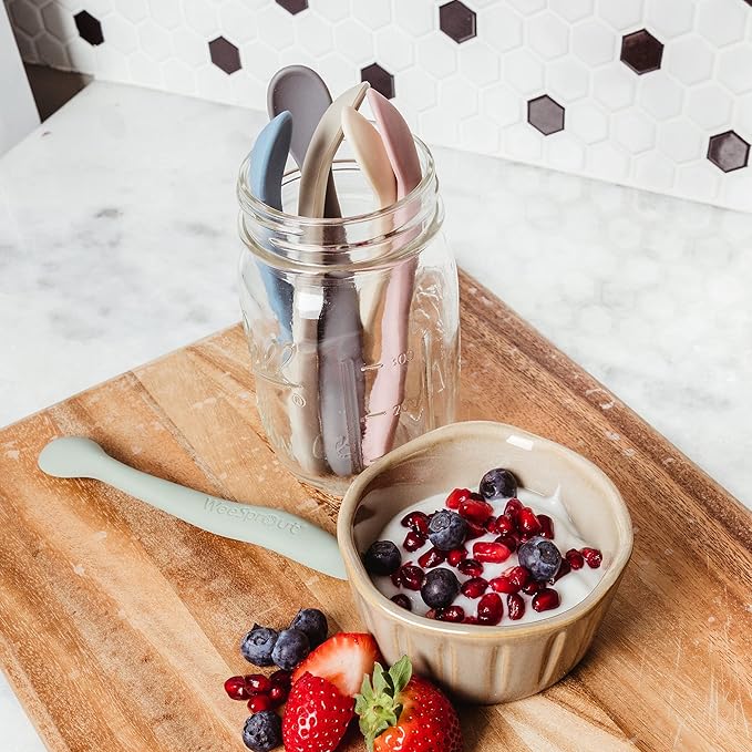 - PERFECT SPOONS FOR STAGE 1 FEEDING - WeeSprout silicone spoons are tailor-made for babies in Stage 1 of feeding. They’re the perfect shape and size for little hands and mouths learning to eat independently! This encourages self-feeding and allows your baby to be more independent during mealtime. Plus, each set of three comes with a divided carrying case for on-the-go feeding!