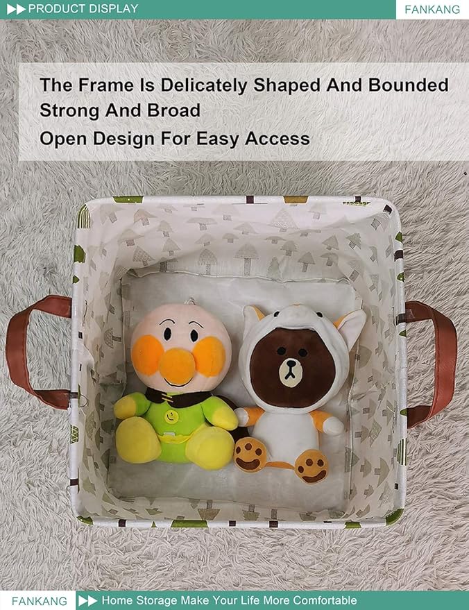FANKANG Square Nursery Hamper Storage Bins Canvas Laundry Basket Foldable with Waterproof PE Coating Large Storage Baskets Gift Baskets for Children Office Bedroom ClothesToys (SquareGreen forest)