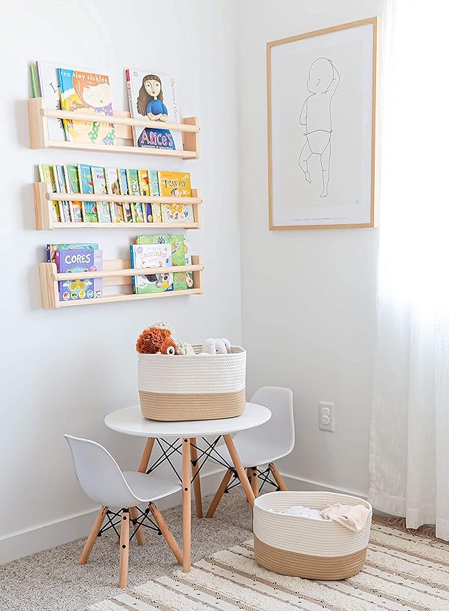 - Discrete, Built-In Carry Handles – These fabric rope baskets for storage also feature slim hand holds built right into the sides of each round basket for a seamless look that’s also functional. Perfect for picking up toys or carrying items around the house.