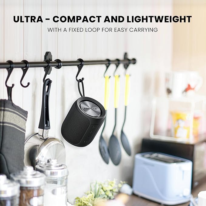 - PORTABLE & LONG-LASTING - With its compact size (3.7×3.2 in) and lightweight design (0.85 lbs), this speaker easily attaches to bags or luggage. The 2500mAh lithium battery delivers up to 10 hours of playtime at 60% volume—perfect for outdoor camping. An ideal gift for men and women! Truth in Power - While some claim 20-30 hour playtime, physics dictates our 2500mAh max capacity. Remember - better sound requires more energy. Compare our audio quality against 'long-play' competitors and hear the difference.