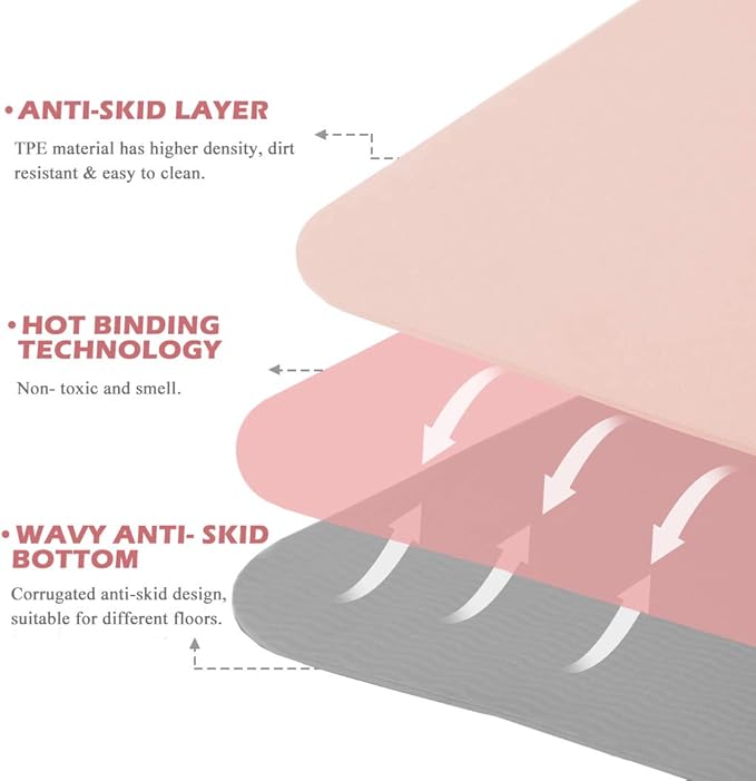 - DOUBLE NON-SLIP DESIGN - This workout mat has double-sided non-slip surfaces. Wavy undersides make excellent traction on the floor. It unrolls pretty flat and stays put. Special textured surface prevents your hands and feet from sliding when you sweat on it.
