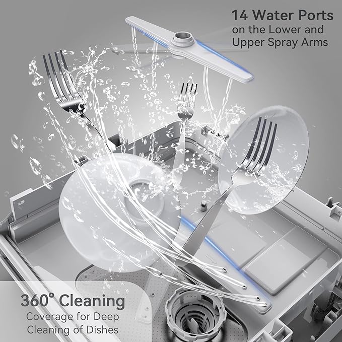 - ăFIVE WASHING PROGRAMSăCountertop Dishwasher with water tank perfectly provides 5 washing programs: Standard Cleaning, Fast Cleaning, ECO Cleaning, Strong Cleaning and Fruit Cleaning. Dual high water pressure spraying arms give dishes that streak-free deep cleaning.