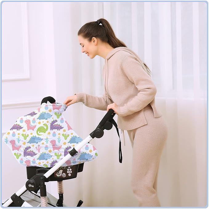 Car Seat Covers Canopy Cover - Multi-use Cover Carseat Canopy, Breathable Breastfeeding Cover, Car Seat Covers for Bbies, Boys & Girls Shower Gifts (Colorful Dinosaur)