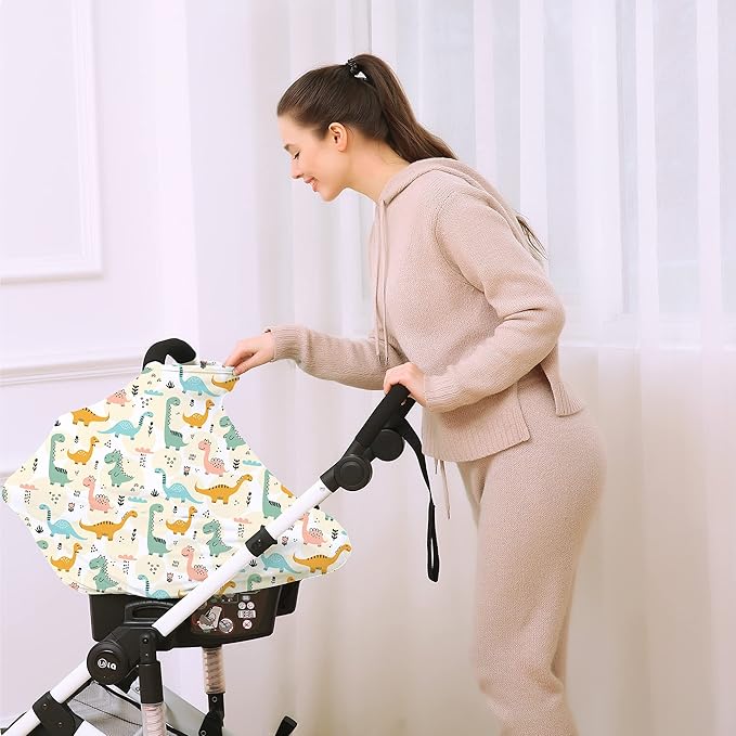 Multi-use Carseat Covers Breastfeeding Cover - Car Seat Covers for Babies, Stretchy Carseat Canopy Cover, Boys and Girls Shower Gifts (Colours Dinosaur)