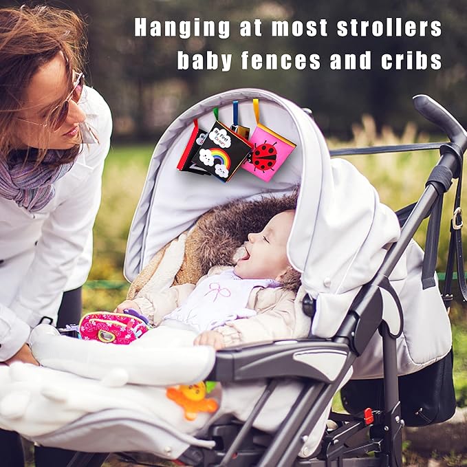 - Baby Soft Cloth Books – Baby favorite toys, the black white and bright color are the biggest advantage, will attract your baby's attention, Crinkle sound and touch will improve baby's audio recognition, motor skills and sensory ability, these interactive soft cloth books will bring endless hours of fun, perfect gift for babies infants toddlers.