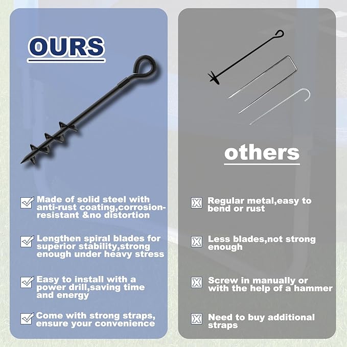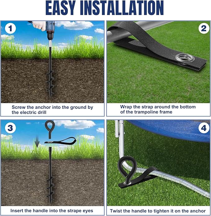 - Durable Performance: Unlike other stakes, these trampoline anchors resist deformation, corrosion, and rust, ensuring long-term, sustainable performance.