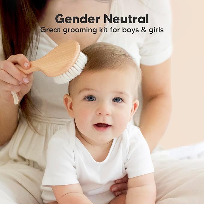 - Perfect Baby Shower Gift For Boys & Girls - Our wooden baby brush set features 3-in-1 full hair grooming kit that grows with the baby for long-term use. The set comes beautifully packaged in a gift box, ideal for gifting as baby bath essentials.