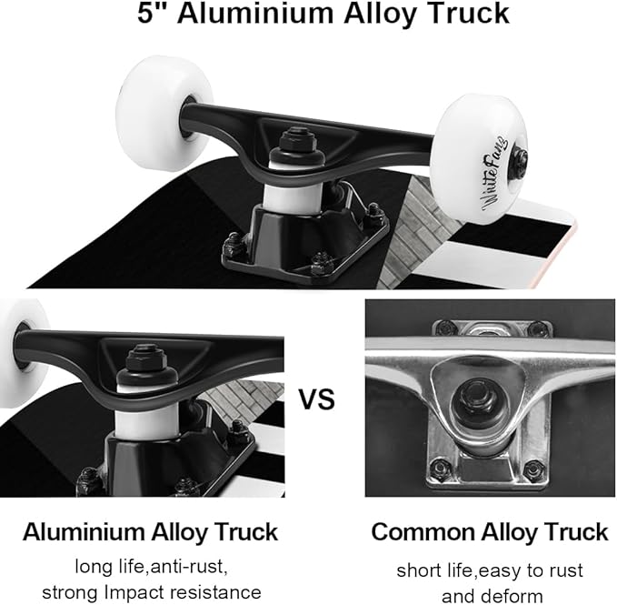 - 🛹 No Assembly Required: You'll receive a complete skateboard comes with 5" tough magnalium alloy truck which helps save your time and hassle of assembling. Ready to play out of the box!