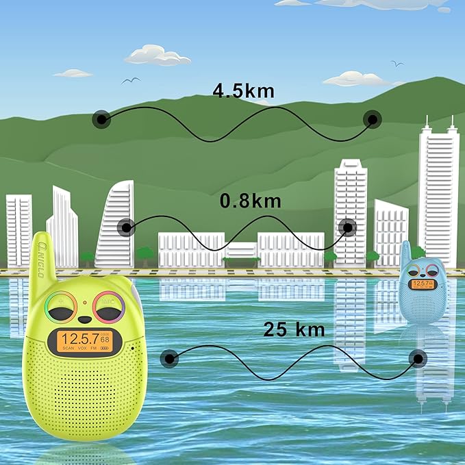 - ๐๐น๐ฒ๐ฎ๐ฟ ๐ฆ๐ผ๐๐ป๐ฑ & ๐๐ ๐ฅ๐ฎ๐ฑ๐ถ๐ผ: The rechargeable kid walkie talkies 2 pack feature with FM radio, your kids would search channels and listen to music or real-time news on the FM. The sound is so clear that you could hear each other within 2 miles range.