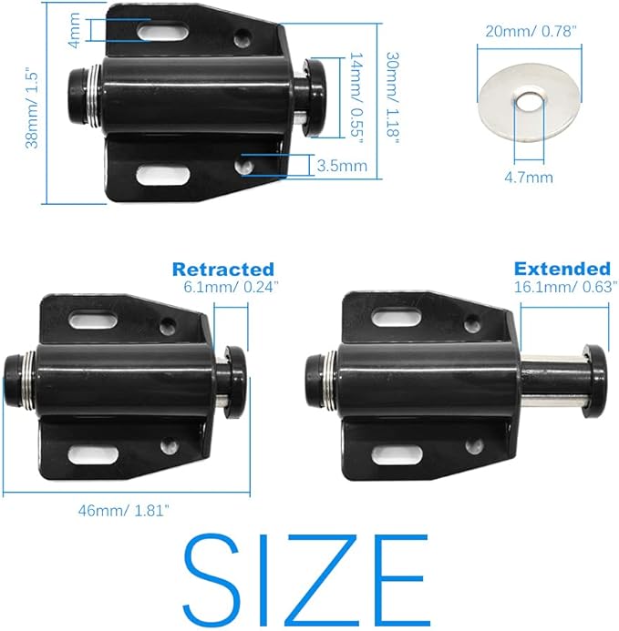 - 【Application Scenarios】Push to open door catch can be used in cabinet, drawer, cupboard, wardrobe, chipboard, sideboard, cooking utensils and another furniture.