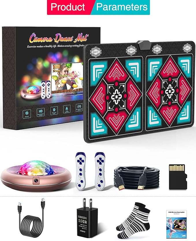 - HD Camera Indoor Dance Floor: 🎥 Transform your living room into a dance studio with our TV danceing mat! The installation is simple plug-and-play. HDMI input delivers instant video transmission, while the HD camera captures precise body movements for enhanced camera-based games. The mesmerizing disco ball creates a vibrant light show, making family dance nights unforgettable with sophisticated entertainment.