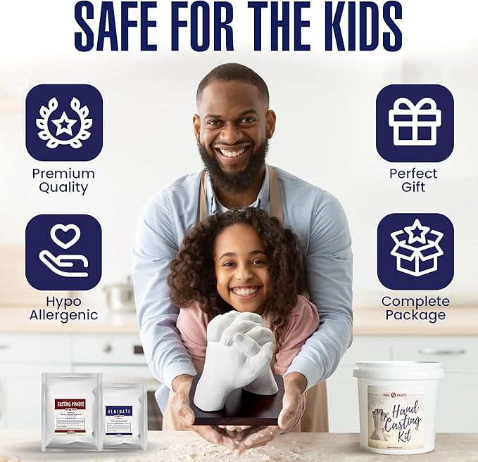- A COMPLETE HAND CASTING KIT: Everything you need, to create your own hand casting! Each package includes a large Plastic molding bucket (1 Gallon), 1 bag of casting Stone Powder (1200g), 1 bag of Alginate Molding Powder (450g),1 de-molding stick, 1 piece of sandpaper, 1 mixing stick, 1 Mahogany Mounting Plaque, and detailed instructions