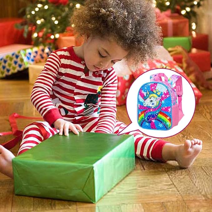 - UNIQUE DESIGN FOR UNICORN BACKPACK: This toddler backpack is inspired by cute and eye catching unicorn sequin with leash design, inspire your little one to own their dreams. Best Christmas gift for kids.