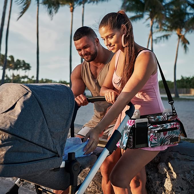 Momcozy Universal Stroller Organizer, 2 Insulated Cup Holders, Removable Zip Pocket, Adjustable Straps, Large Capacity Baby Essentials Compact Design, Fits Any Stroller (Multicolor)