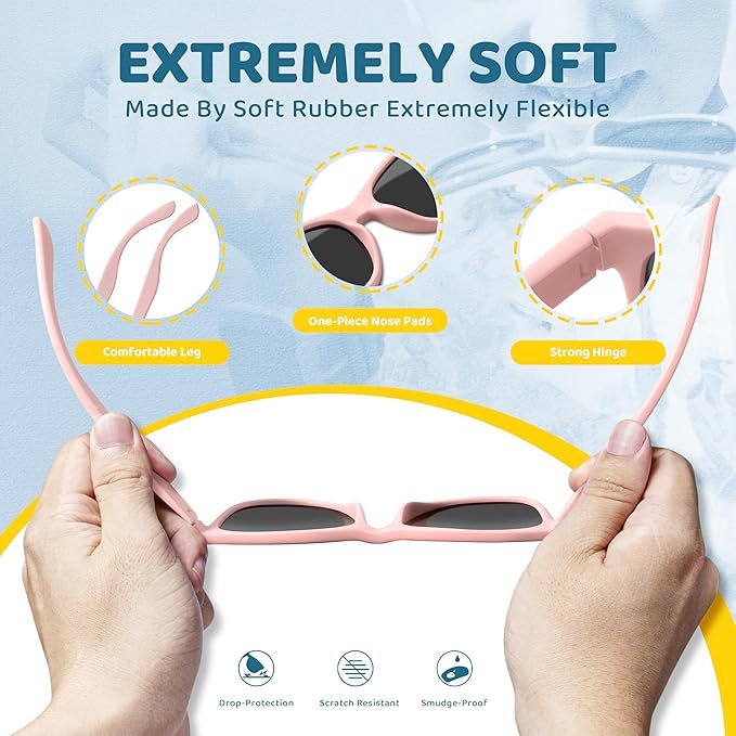• UNIQUE SUNGLASSES STRAP-Each of our children's glasses is equipped with a unique strap, which can firmly fix the glasses on the child. Even if it is a baby, there is no need to worry about the shades slipping off.