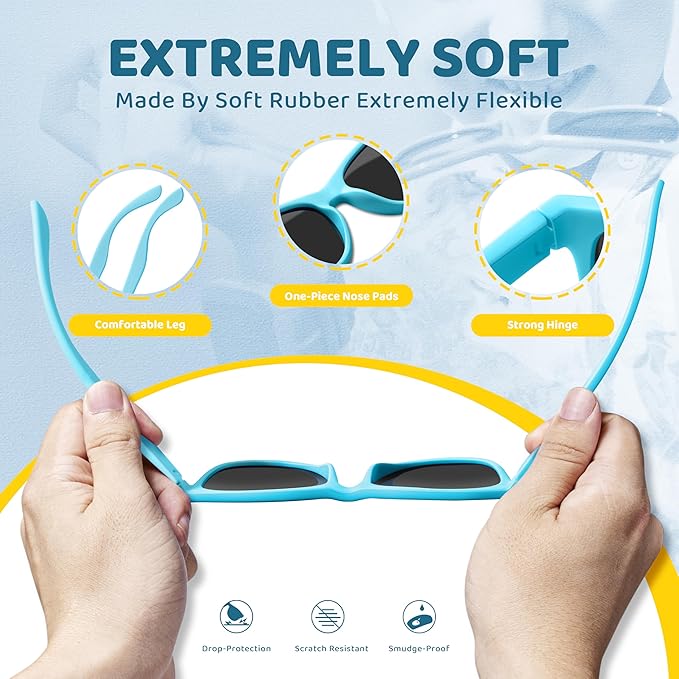 - SAFE AND COMFORTABL - RIVBOS sunglasses frame is made of soft silicone and unbreakable material, which is not easy to break, very durable, and also provides a comfortable wearing experience.