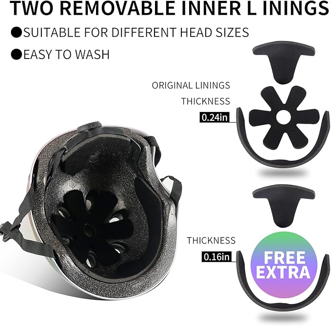 Adjustable Color Gradient Skateboard Helmet for 3-5-8-14+Ages【Toddler Kids Youth Adult】 Girls Boys Woman.Bike Helmet for Multi-Sports Cycling Bicycle Scooter Inline Roller Skate Rollerblading