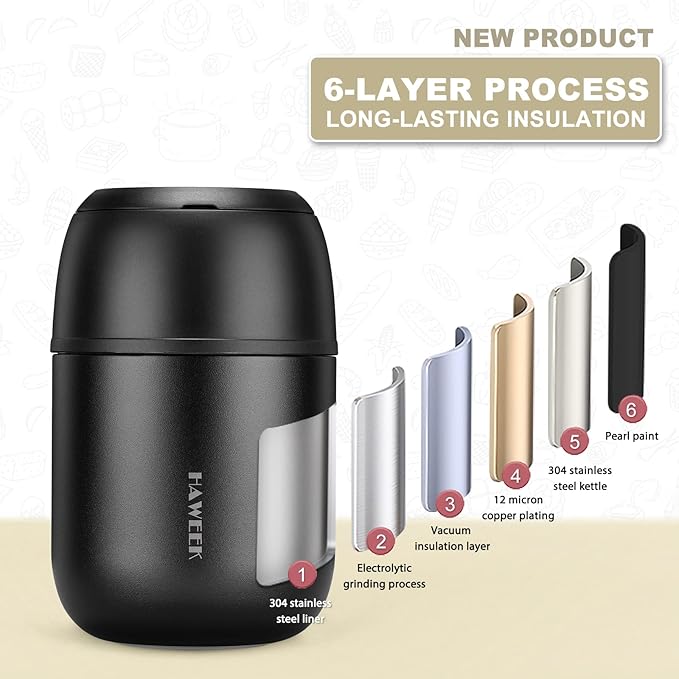 - 【Long Time Stays Hot/Cold】Double-walled construction with vacuum insulation for maximum heat retention, keeping contents warm up to 12 hours or cold for 24. The interior is constructed entirely of food-grade 304 stainless steel, ensuring hot foods never touch the plastic.