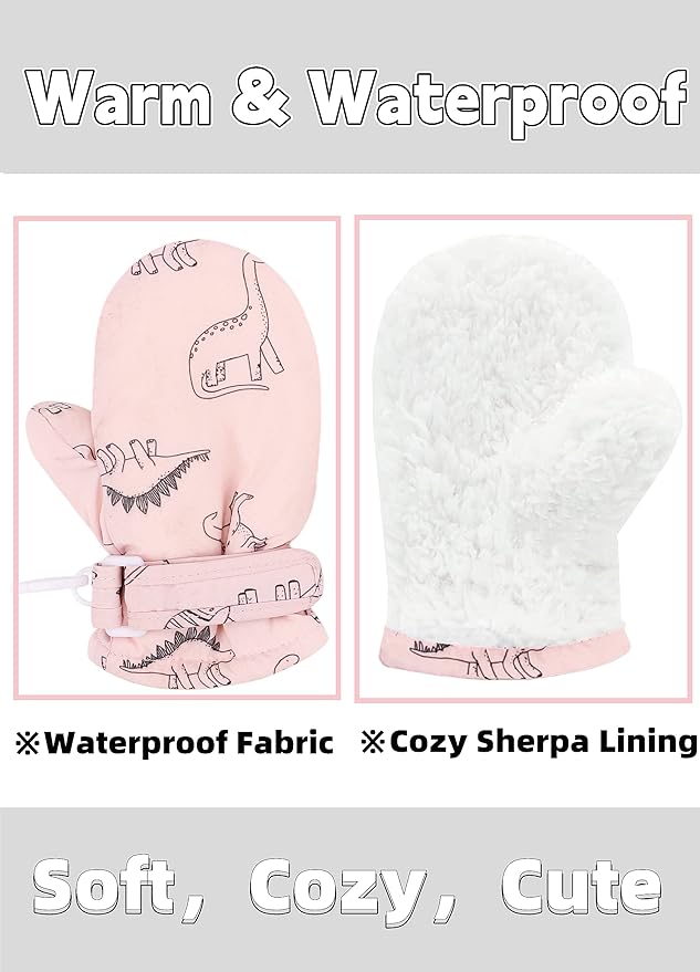 • The surface of this toddler mitten was made from high-quality waterproof acrylic fiber, ensure the soft touch and lightweight as well as breathable, make sure your little one playing in the snow all day but the inside will not get wet.