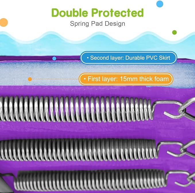 - 【Safety Certification & No-Gap Design】Zupapa trampolines exceed ASTM and TUV safety standards, featuring the patented No-Gap Design (Patent No. 2021214143542). The jumping mat and spring cover are tightly sewn together, eliminating gaps and expanding the jumping area. Plus, thick, durable pads cover all springs for ultimate safety. Jump worry-free on Zupapa trampolines.
