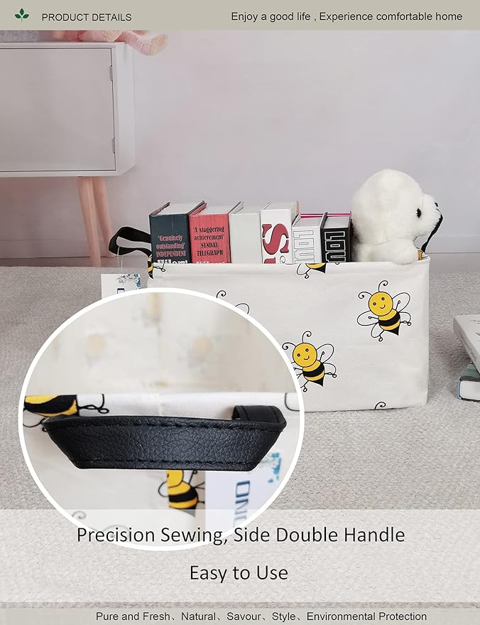 Rectangular Folding Laundry Basket, waterproof Canvas Basket,gift basket,Suitable for children's room,Office,Clothes,Toys Storage(Bee)