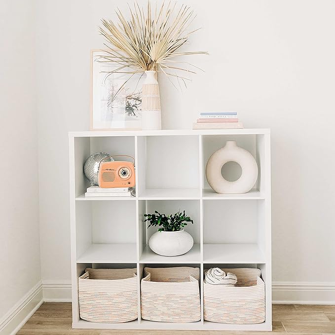 - Elegant Cotton Coiled Rope Cubes Design – A vintage feel with a modern touch these coiled rope baskets are made from tightly-woven cotton that’s strong, durable, and fray resistant for long-lasting indoor storage, display, or organization.
