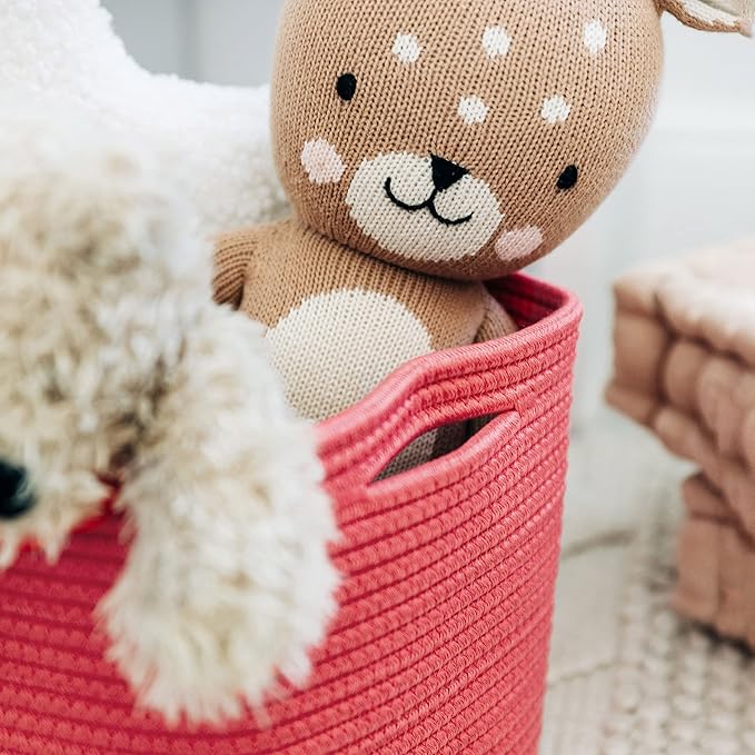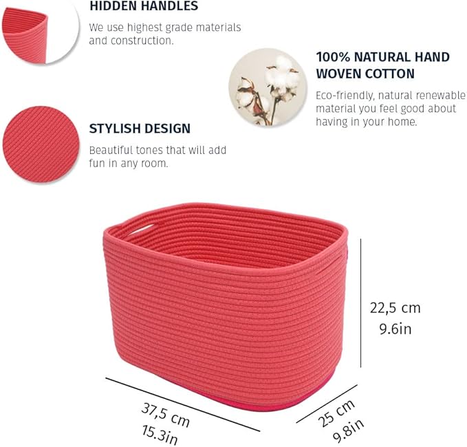 OrganiHaus Coral Basket for Shelves, Decorative Cloth for Organizing, Cotton Rope Storage Basket for Toys, Small Woven Baskets for Storage